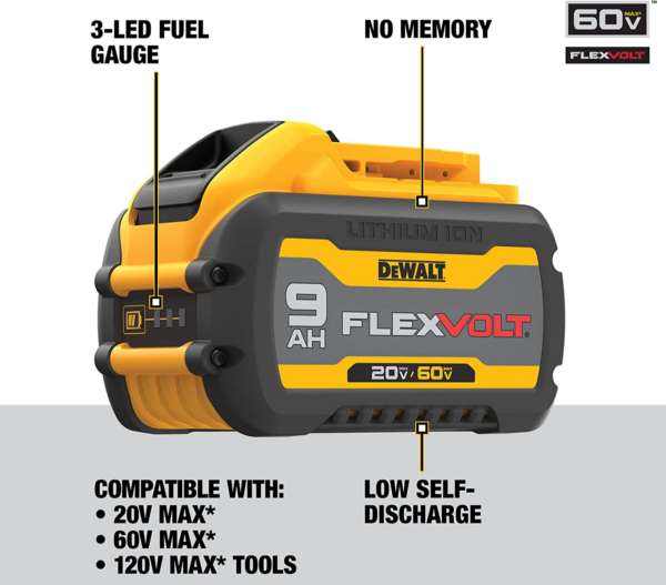 La batería de 60V de Dewalt proporciona una capacidad de 9Ah, ideal para herramientas eléctricas de alto rendimiento. Su diseño permite una mayor duración y eficiencia en el uso, facilitando trabajos prolongados sin interrupciones. Es compatible con una amplia gama de herramientas Dewalt, lo que la convierte en una opción versátil para profesionales y aficionados al bricolaje. Además, su tecnología FlexVolt permite cambiar automáticamente entre 60V y 20V, adaptándose a las necesidades de cada herramienta.