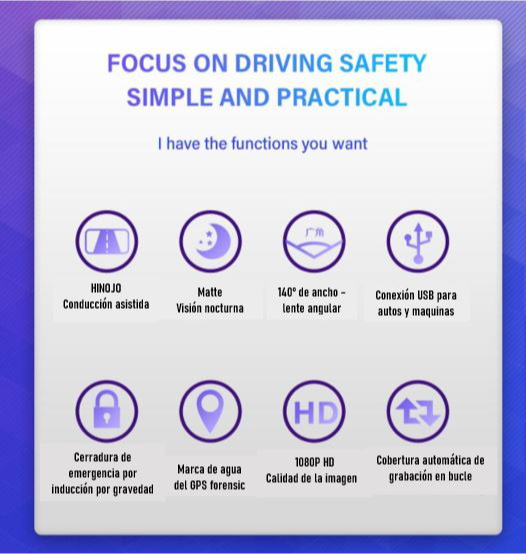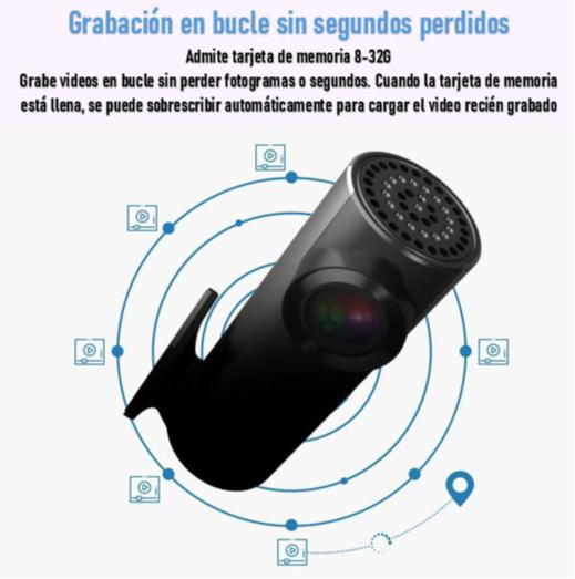 La lente gran angular de 140° permite capturar un amplio campo de visión, ideal para grabar todo lo que sucede en la carretera. Con resolución de 1080P HD y grabación en bucle, garantiza que no perderás ningún momento importante. Su visión nocturna mate y la sensibilidad a la luz automática aseguran grabaciones claras incluso en condiciones de poca luz. Además, la cámara se conecta fácilmente a la pantalla de control central de Android mediante un cable USB, sin necesidad de WIFI. Su diseño incluye una carcasa de metal resistente a altas temperaturas y un soporte que permite un giro de 360º para ajustar el ángulo de grabación. Características adicionales como la inducción de gravedad y el GPS forense añaden funcionalidad y seguridad a tus viajes.