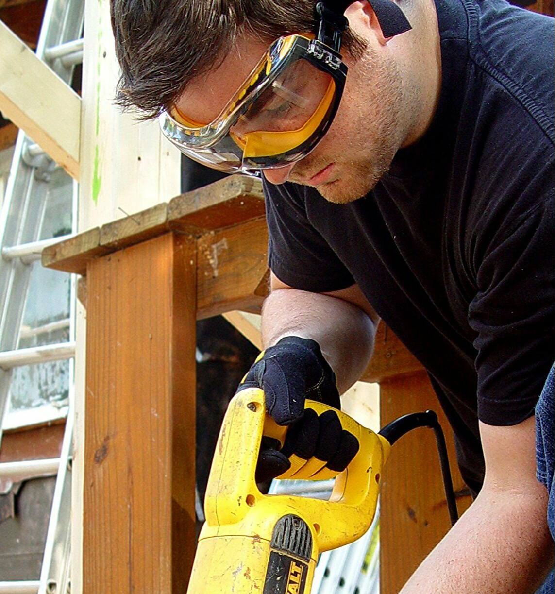 Lentes de seguridad diseñados para proteger los ojos contra impactos, polvo y partículas voladoras durante trabajos de construcción, carpintería o uso de herramientas eléctricas.